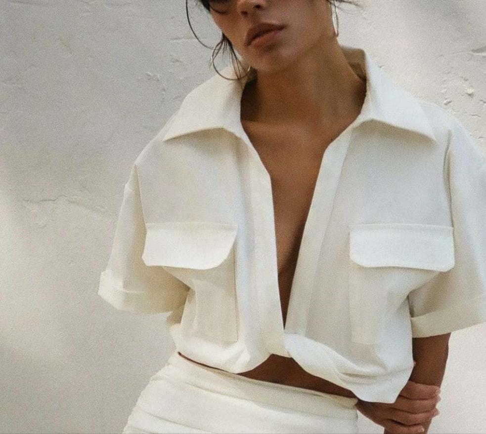 Coastal Cream Linen Cropped Top